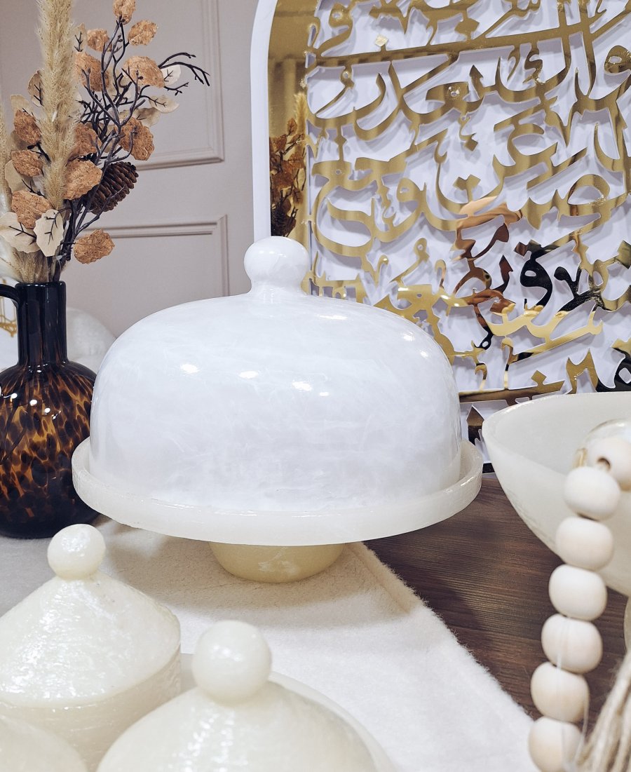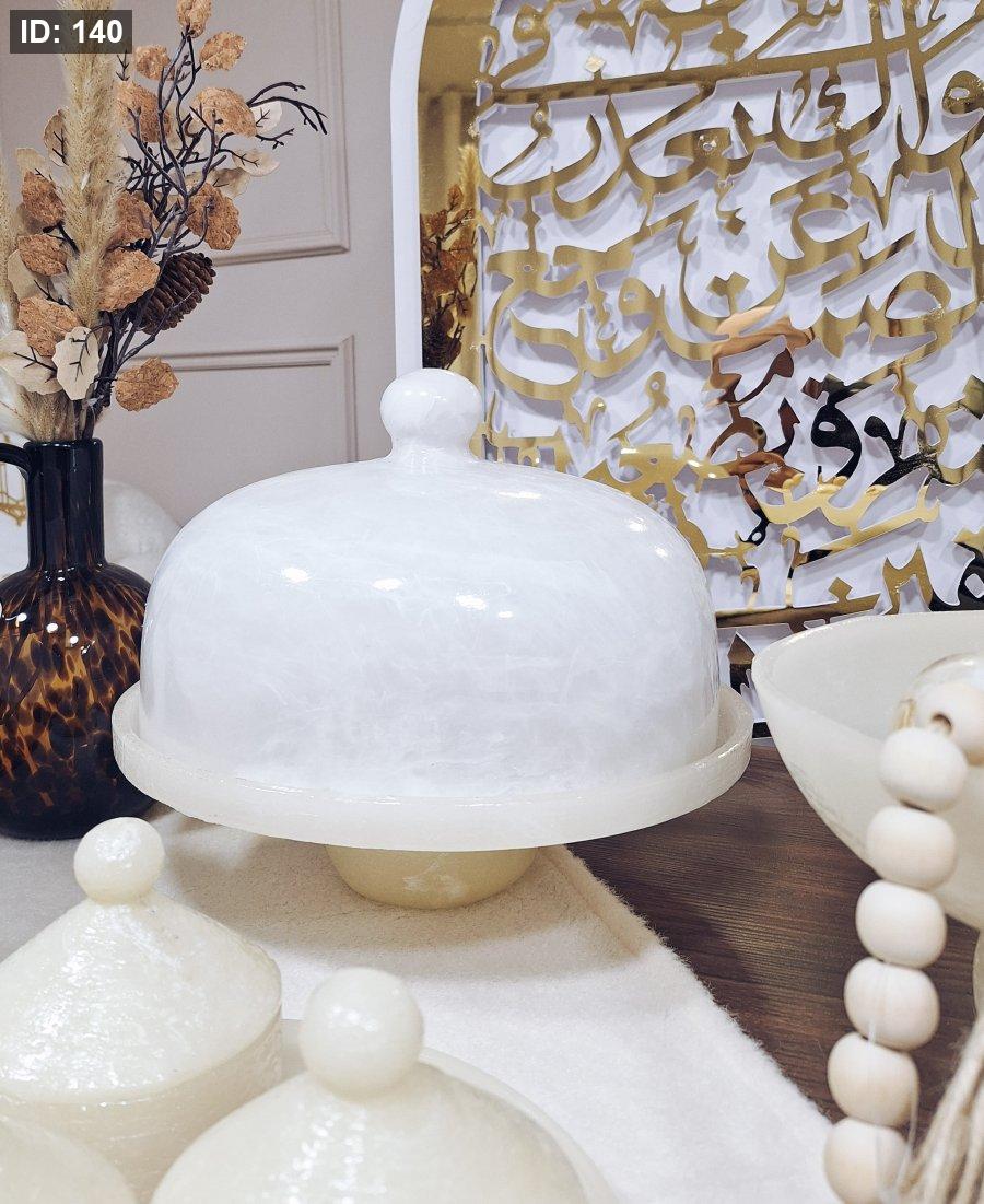 جاط كعك صدف بيج مدور بغطاء وقاعدة