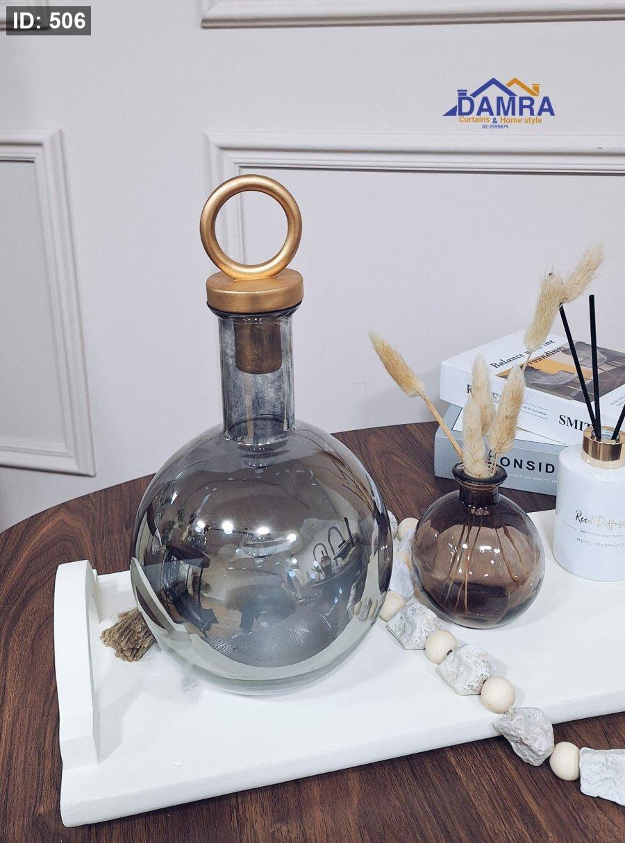 فازة زجاج سكني غطاء حلقة ذهبي 33*21 سم JW024