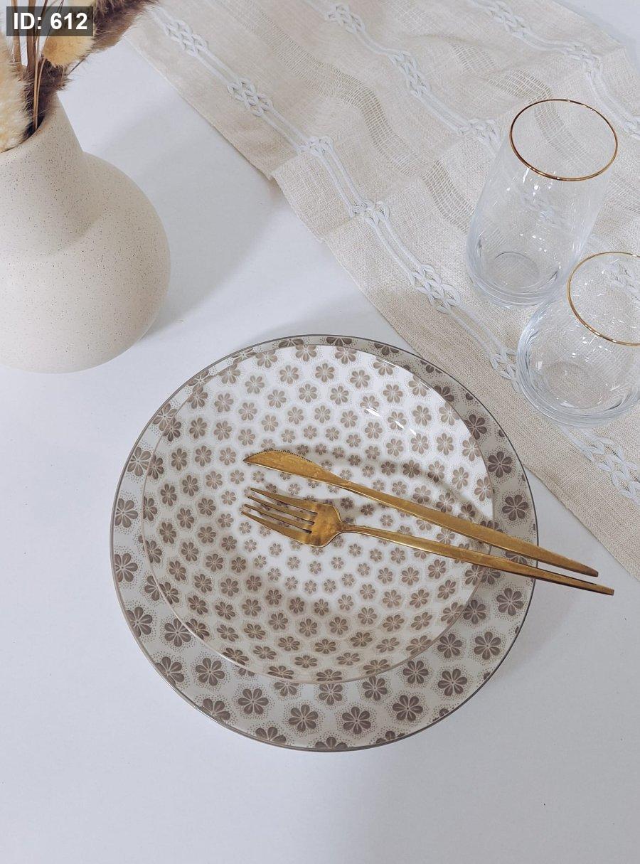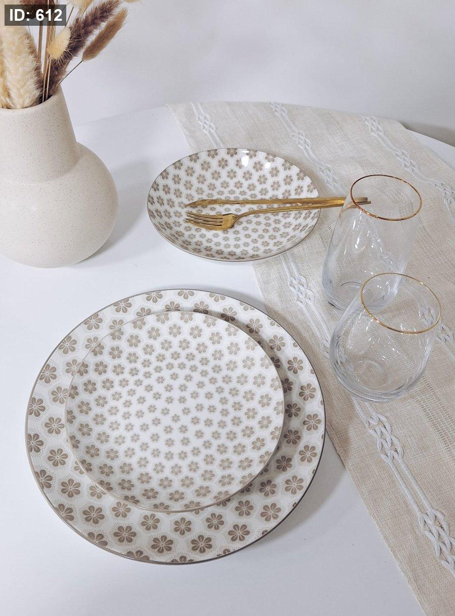 طقم صحون 18 قطعة بورسلان بني 25S256